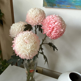 簡單的插花步驟:配合花的體態搭配家裡既有的花器,入水切剪根、摘葉修正(葉子不要浸泡在水裡),建議每天換水或觀察水是否變混濁,花瓶水變混濁要立即更換,代表已經滋生細菌,易造成鮮花根莖開始霉爛。